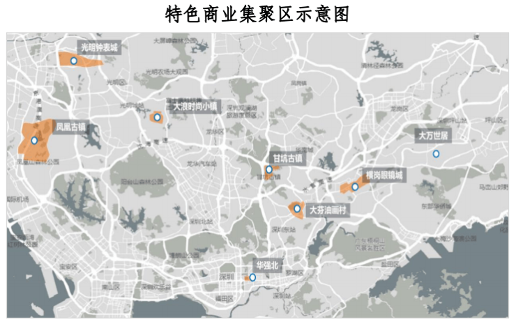 此外,深圳一些区域有独特的产业和商品优势,形成特色商业聚集区,如: