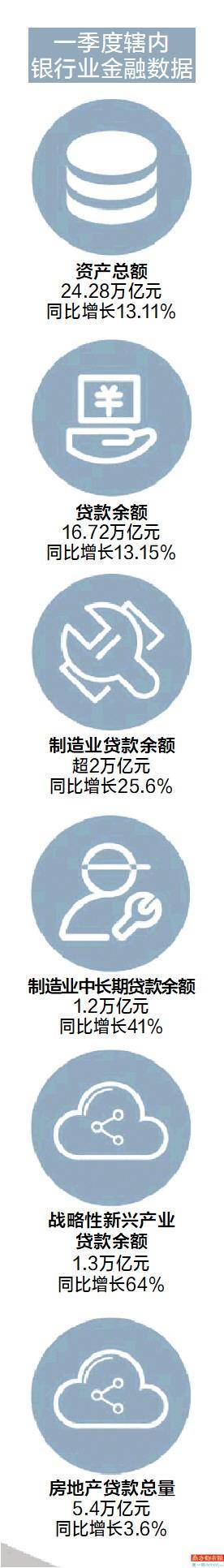 截至3月末,辖内制造业贷款余额超2万亿元,同比增长25.6%,高于各项贷款增速12.5个百分点;其中,制造业中长期贷款余额达1.2万亿元,同比增长41%。此外,辖内战略性新兴产业贷款余额1.3万亿元,同比增长64%;累计为国家级及省级“专精特新”企业发放贷款超过760亿元。