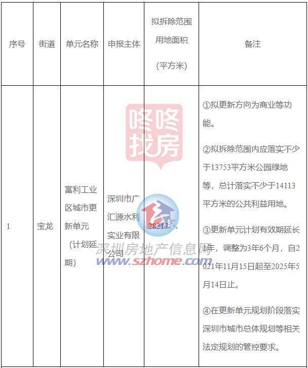 另外,宝龙街道富利工业区城市更新单元进行延期,延期至2025年5月份。