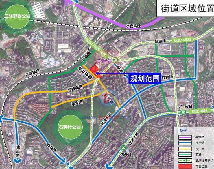 项目位于龙岗区龙城街道盛平社区,龙城大道与内环北路交叉口东南侧。