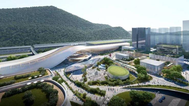涉铁工程包括城市客厅,位于深汕地下站房上方,为室外开放空间,投影面积约17000㎡,展开面积约20000㎡,建设内容主要包括建筑、结构、电力等。
