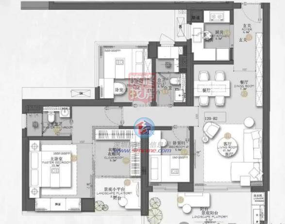 项目占地面积约3.9万㎡,总建面约26.3万㎡,其中住宅约17.7万㎡,商务公寓约7万㎡,商业约1万㎡。
