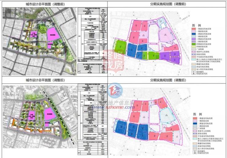 由原四期实施修改为分两期实施【下列地块序号依据“地块划分与指标控制图(调整后)”】。
