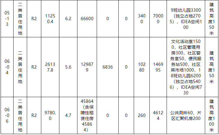 宅地方面,5块地建筑高度在150米,1块地建筑高度在100米。6块宅地总用地面积为92865.2平米,总规划容积为482578平米。