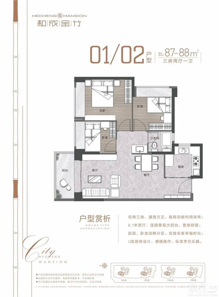 和成金竹家园 推出390套房源,户型面积72-88-99㎡,备案均价6.2万/平,较低5.68万起/平,精装交付。