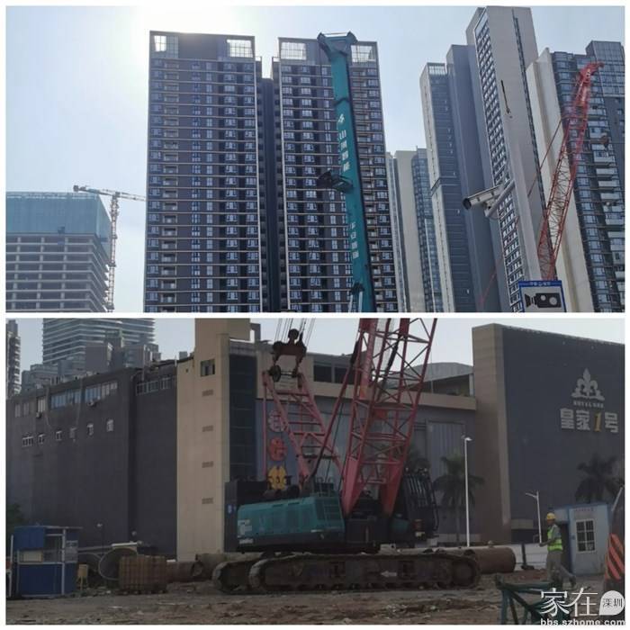 据家在深圳网友爆料看,目前现场有工作人员,挖机等机器再进行桩基工程作业 。