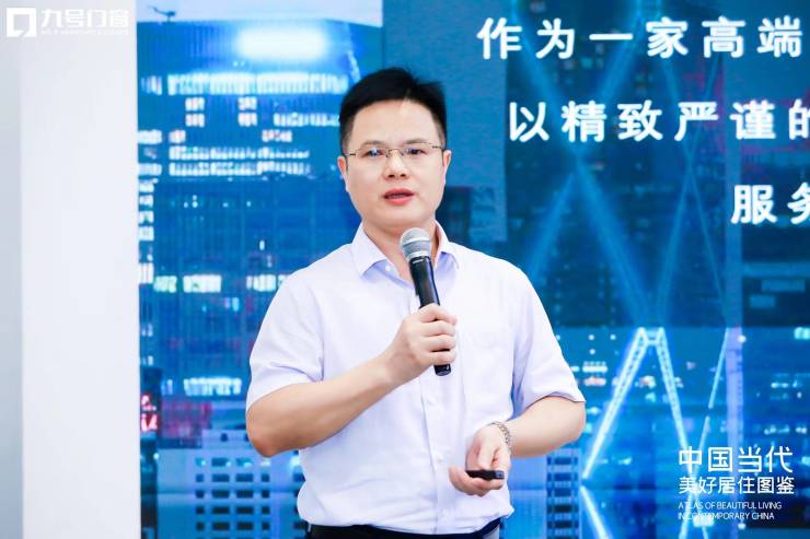 深圳市九号门窗科技有限公司董事长/广东省门业协会副会长赵宏光先生上台分享。作为中国排名前列代高端门窗品牌创建者,赵总倡导高端门窗家文化。他谈到了门窗领域的发展历程,当下疫情的全球化影响,困境中酝酿着新的机会,存量改造为门窗行业带来万亿级市场。