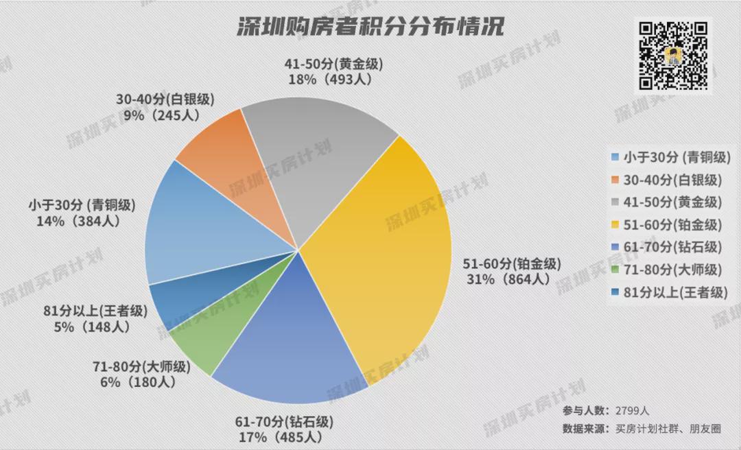 前几日,@深圳买房计划 通过问卷调查了买房计划粉丝群和朋友圈的购房者积分分布情况,共有2799人填写了问卷。