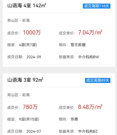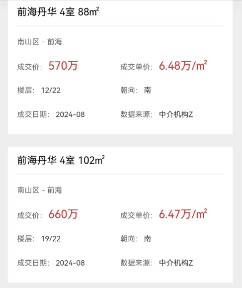 前海丹华在8月成交的两套房源,成交单价更是回到了6.5万左右的水平。