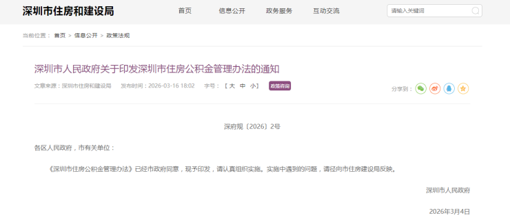 据了解,深圳市住房公积金制度自2010年12月施行以来,在支持职工住房消费方面发挥了重要作用。截至2025年12月底,全市住房公积金累计归集资金10329亿元,累计支持职工提取住房公积金6941亿元,累计发放住房公积金低息贷款55万笔、3926亿元,制度惠及面持续扩大。