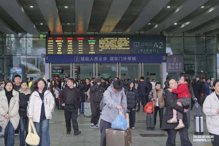2月4日是春节长假的最后一天。记者了解到,深圳铁路整体客流稳中有增,但仍呈现较为明显的单向特征,截至2月3日累计到发旅客突破1100万人次,较去年同期增长8.5%。其中,2月3日,深圳北站到达旅客32.9万人次,超过2024年10月7日单日到达旅客32.6万人次的最高纪录,创单日到达客流量历史新高。今日(2月4日),预计深圳铁路到达旅客51.5万人次,深圳北到达旅客34.3万人次。