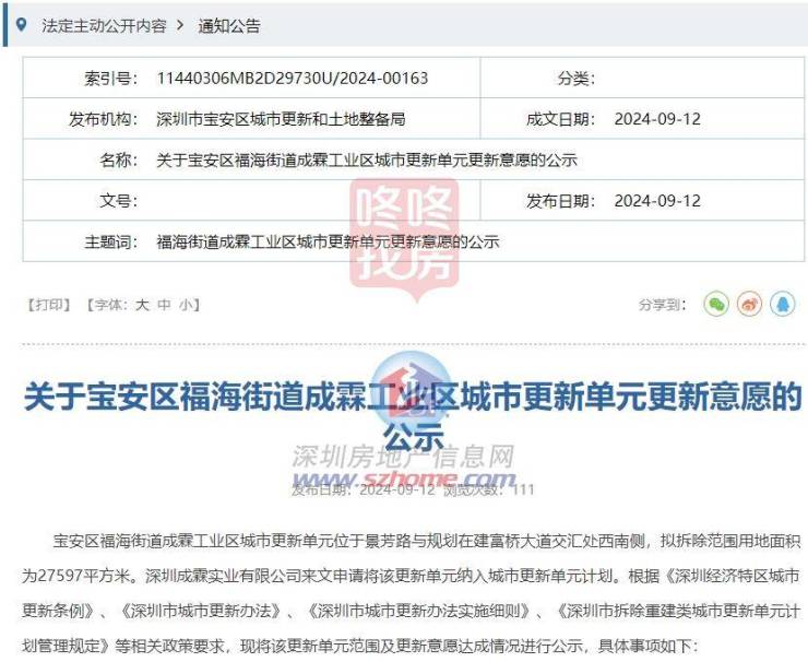 近日,宝安区城市更新和土地整备局公示《2024年深圳市宝安区城市更新单元第一批计划(草案)》,计划分别包含福源工业区城市更新单元、成霖工业区城市更新单元,以及两项目的更新意愿也同天公示。