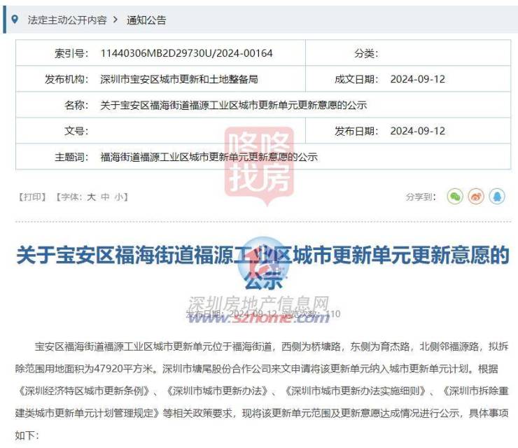 两个旧改项目均位于福海街道,拟更新方向均为普通工业用地等功能。