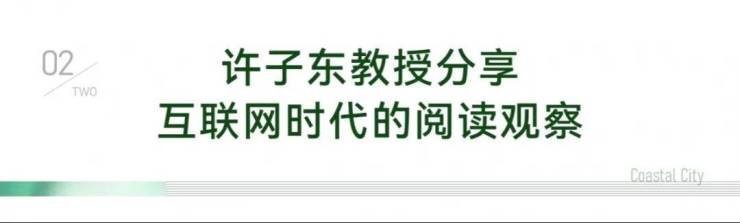 除了教授头衔和作家身份,许子东教授还是多档热门节目常驻嘉宾,比如《锵锵三人行》、《圆桌派》、从最早的互联网兴起到如今更多元的媒介融合,他一路亲历并见证,因此当天就互联网时代的阅读现象分享了观察和心得,并亲述了短视频、播客等新媒介对拓展文本阅读边界的影响。作为“海岸读书会”的特邀阅读导师,在演讲的最后也表达了对海岸读书会的期许……