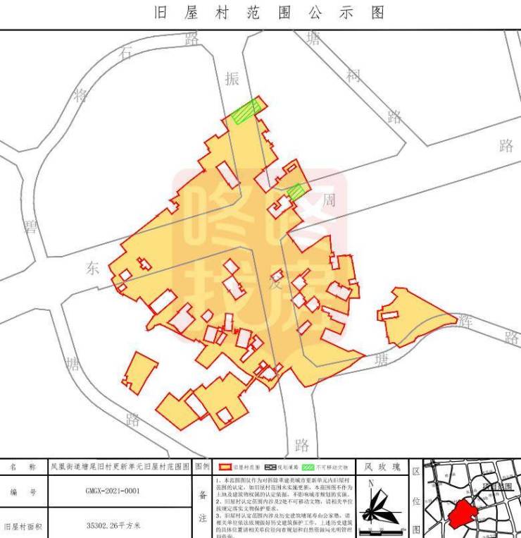 项目已于2010年4月立项,2020年中旬招标前期服务商,2021年3月24日,旧村认定范围公示,拟认定旧屋村范围用地面积35302.26平方米。