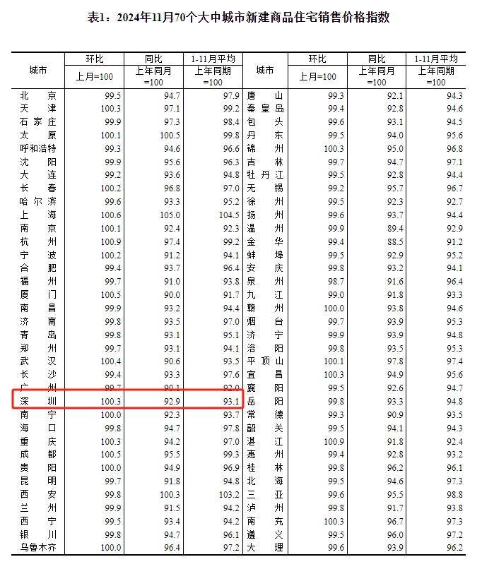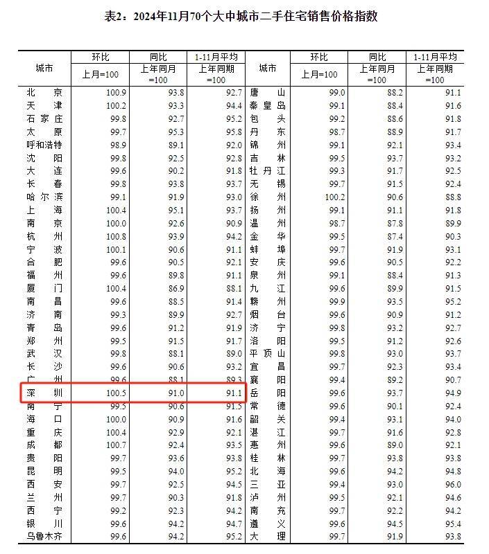 国家统计局:11月深圳一、二手房价格均上涨,最高涨幅0.5%