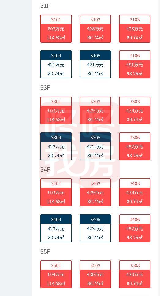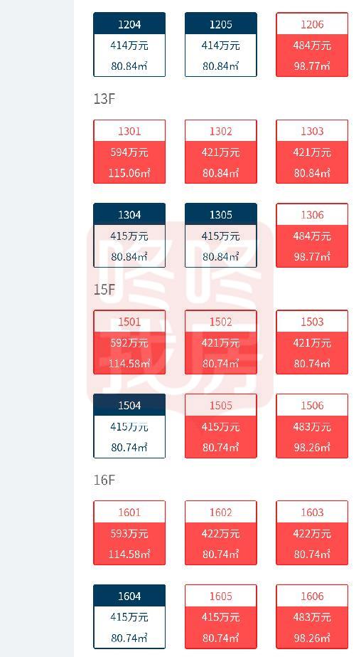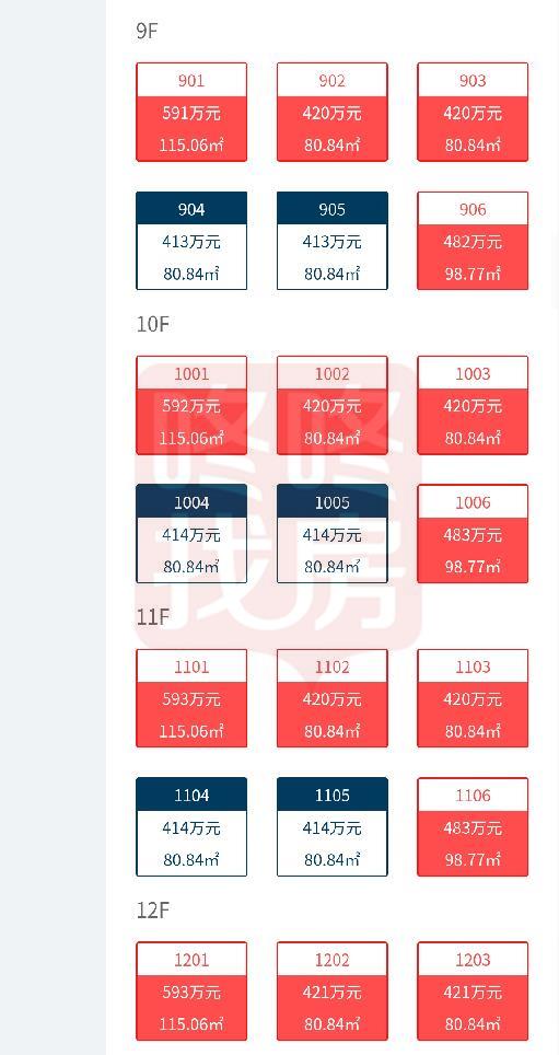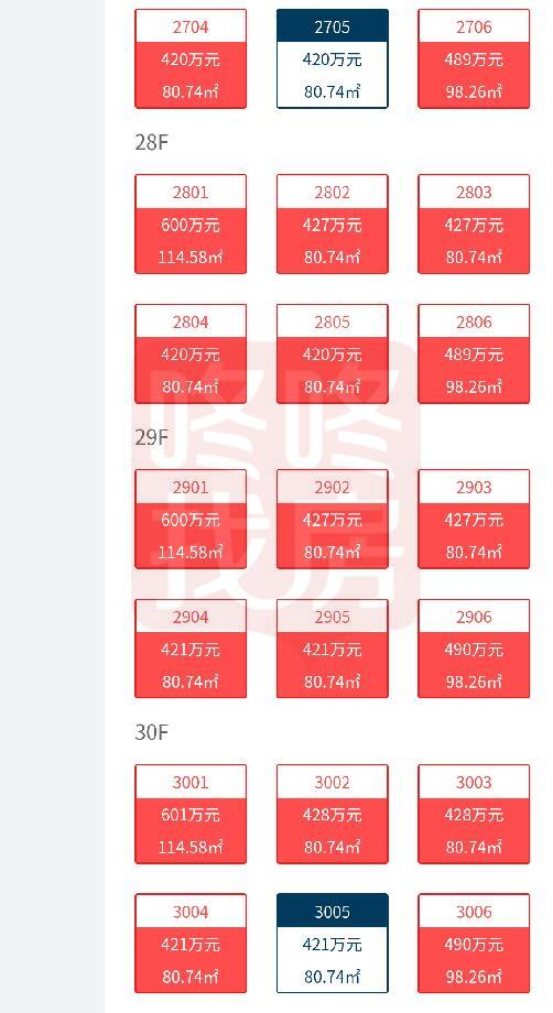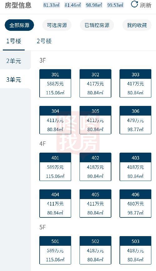 1号楼3单元楼王的选房销控情况如下: