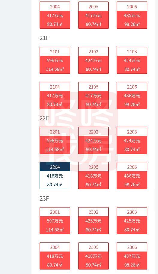 万科光年四季住宅一共777套,建面约80-116㎡,均价约5.1万/㎡,单价区间在4.8-5.3万/㎡,总价区间在404-608万/套。