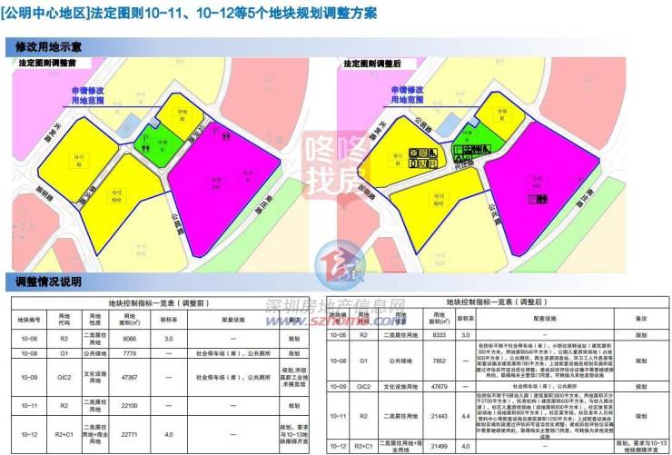 近日,深圳市规划和自然资源局光明管理局公示关于[公明中心地区]法定图则10-11、10-12等5个地块规划调整方案。