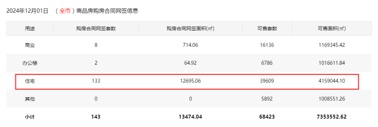 2024年12月1日新房住宅认购网签123套。其中,宝安43套;福田0套;龙岗16套;罗湖5套;南山8套;盐田0套;龙华25套;坪山14套;光明12套;大鹏0套;深汕0套。2024年12月1日新房购房合同网签…
