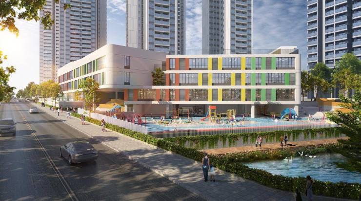 比如东侧一路之隔为中科附高,北面规划有72班九年制院校(规划中),西面也规划27班九年制院校(规划中)。