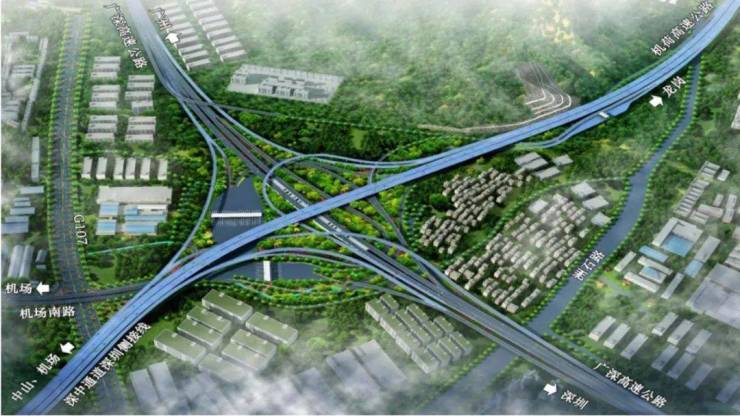 正在建设中的机场互通、鹤洲互通2座互通式立交为双向八车道,设计速度100 km/h,计划2024年与深中通道同步建成。