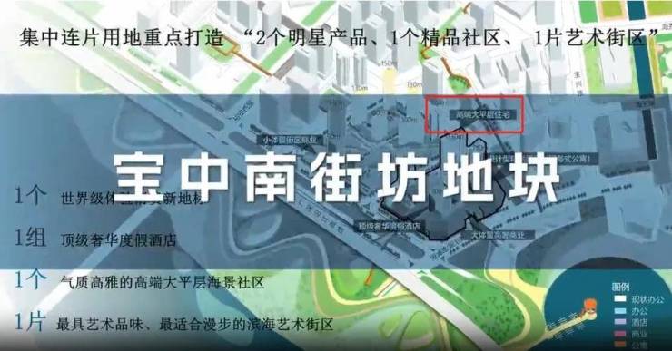 据当时官方对该地块的介绍,将规划为高端大平层住宅。据业内人士分析,该地块距离海岸线仅300多米,建成后将成为是整个宝中最近海岸线的住宅楼盘。