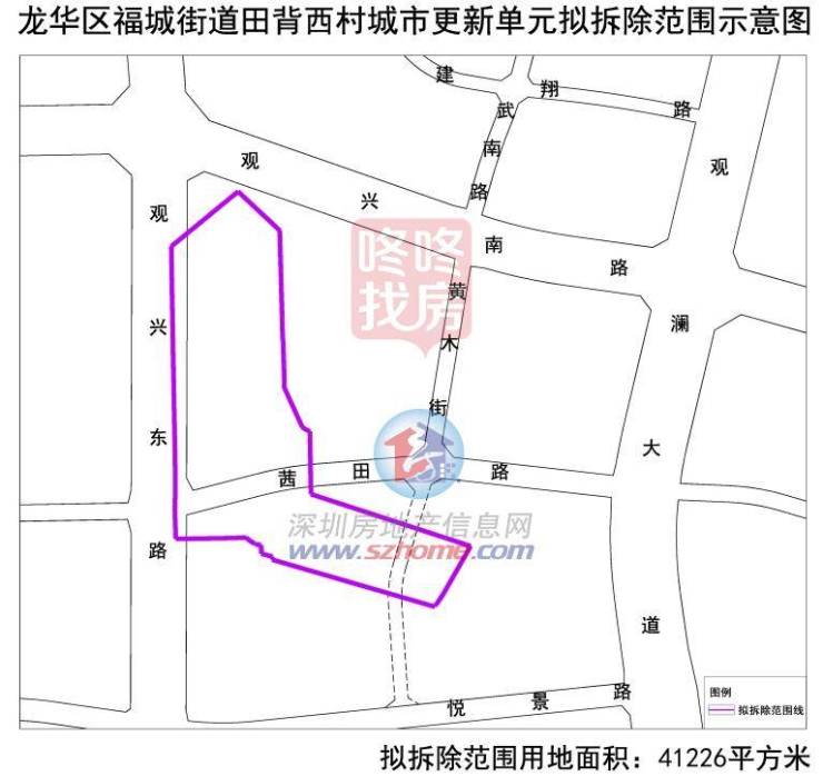 龙华区福城街道田背西村城市更新单元位于观澜大道与观天路交汇处的西北侧。