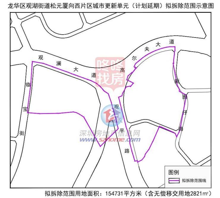 松元厦向西片区更新单元项目位于龙华区观湖街道观平路与观澜大道交汇处两侧。