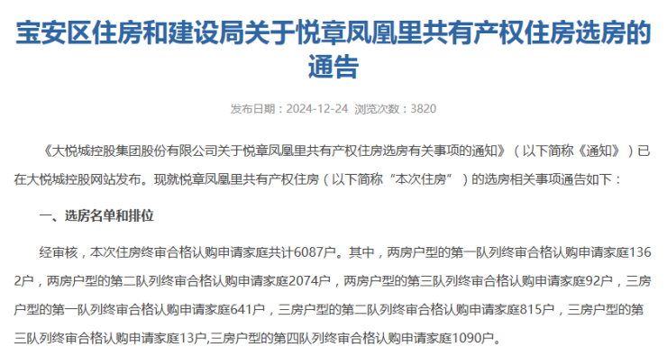 宝安悦章凤凰里项目共有产权住房选房时间、地点定了!