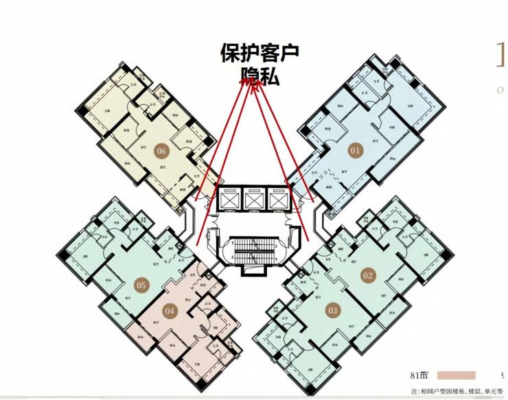 户型大体和 3/5 栋的一致,可分为建面约 81/91 ㎡和建面约 107/126 ㎡两组面积段,依然有以下几个突出看点: