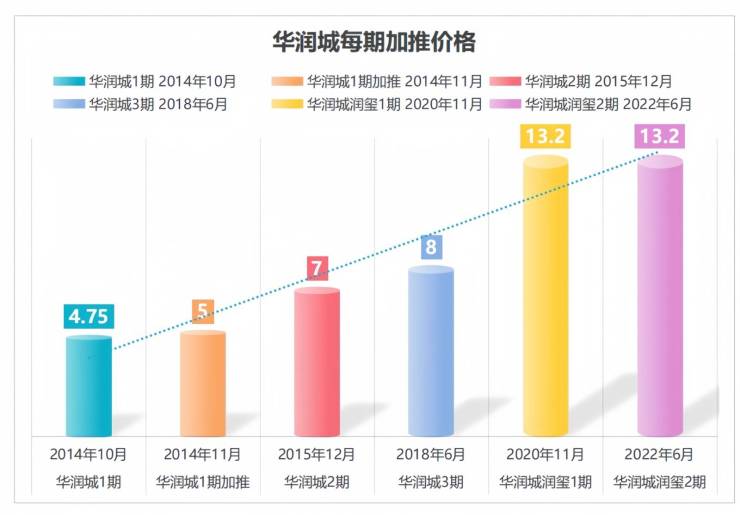 大盘加推,看得见的资产增值红利。大盘每次加推都推升前期房源价值,如华润城由2014年的4.75万/㎡,到2022年的13.2万 /㎡,价格阶梯式上涨,早期业主优先享受资产增值红利!