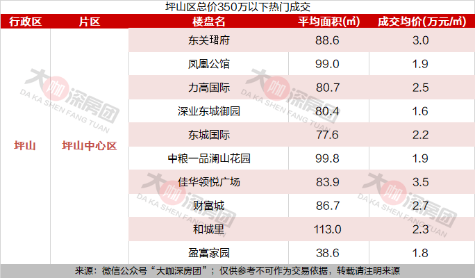 总价350万内,深圳各区这些楼盘最好卖!