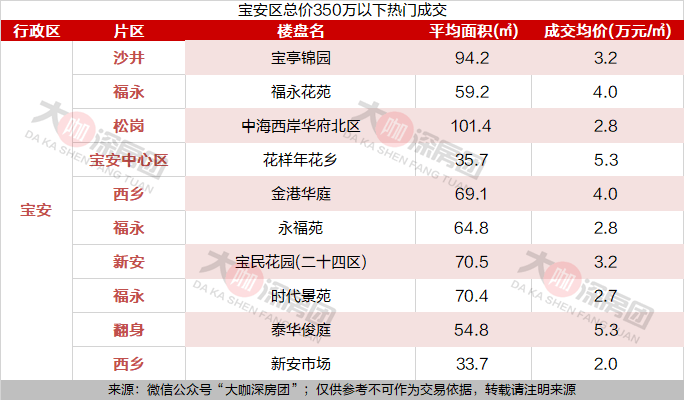 宝安区的榜首的小区,也是9月全市成交榜第一,沙井的宝亭锦园,目前成交均价在3.2万元/㎡,平均面积94.2㎡。