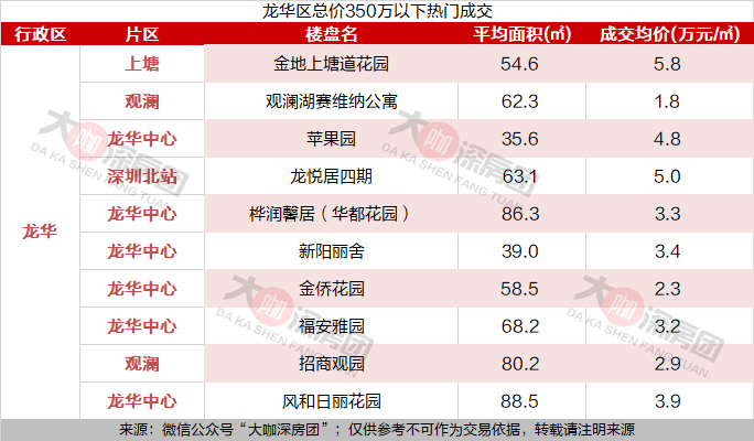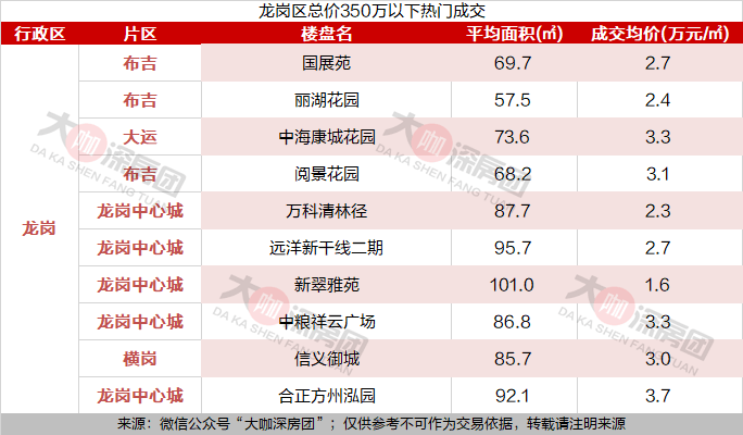 龙岗区排行榜的成交量也相对较高。