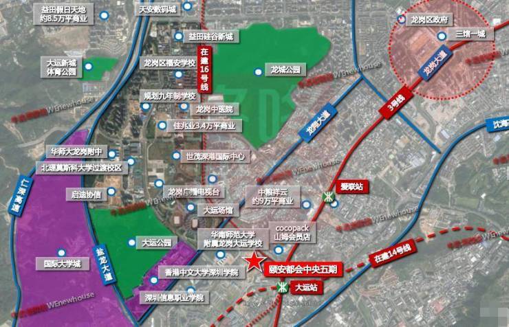 颐安都会中央位于大运新城片区,周边文、体、商、医、产业等资源相对较为集中,配套较为完善,近3/14(建设中)/16(建设中)号线交汇站“大运站”,轨道交通非常便捷。