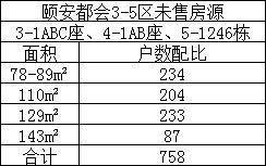 未售房源分别位于3期1栋ABC座、4期1栋AB座、5期1246栋、未售房源建筑面积约78~98平234套,110平204套,129平233套,143平87套。