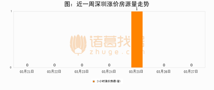 根据诸葛找房数据显示,深圳24小时涨价房源量为0套,较03月26日持平。