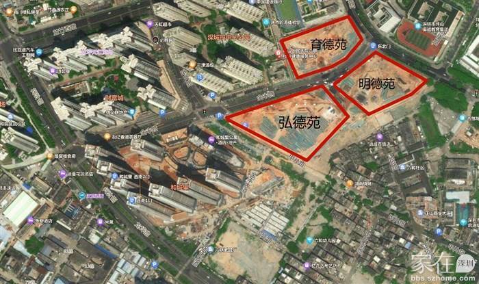 财富城二期有弘德苑、明德苑、育德苑3个地块。育德苑位于坪山区坪山金丰路和长安一街交汇处西北侧,距离16号线新和地铁站1公里以上。