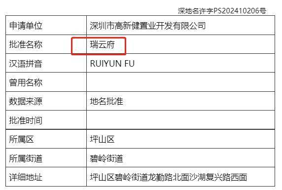 2023年3月,天健+深福保+深高新区投资以15.49亿买的坪山G11330-8045宗地,有新名字了——瑞云府。
