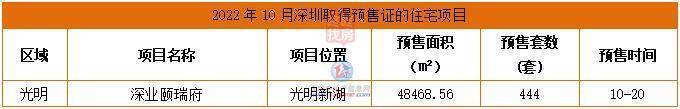 2022年10月,深圳仅一个项目取得住宅预售许可证,预售444套住宅。