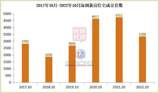 10月份同期成交量对比,2017年10月、2018年10月、2019年10月,是成交量较低的月份,每月新房住宅成交量不足3000套。2020年10月和2021年10月成交量较高,2020年10月成交4617套新房住宅,2021年10月成交4712套新房住宅,2022年10月成交量回落,为3328套。