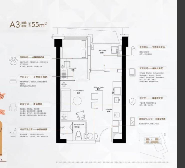 御成府主推的单身公寓约350套,规划停车位224辆,主推的户型建面约38-55㎡。