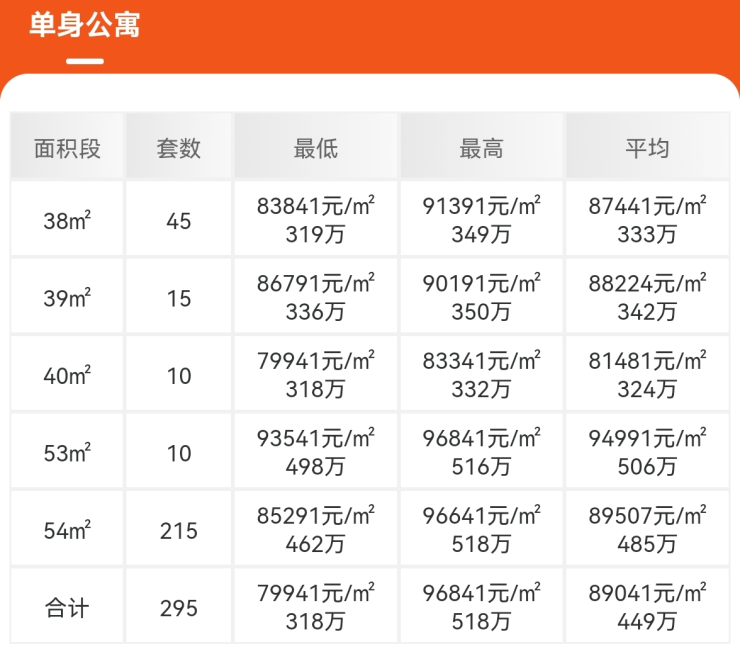 御成府获批预售许可证(预售证号:深房许字(2022)南山017号),推出295套单身公寓,主推建面约38-54㎡,均价约8.9万/㎡,备案单价约7.99-9.68万/㎡,备案总价约318万起,项目将是精装交付。