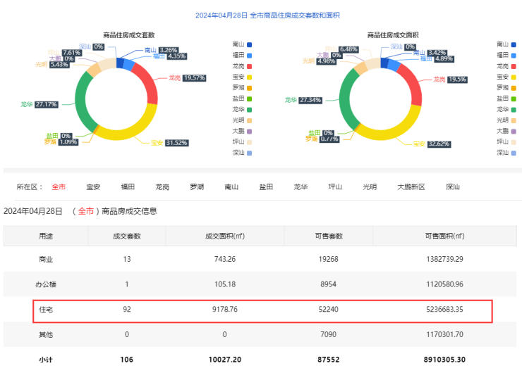 2024年4月28日新房住宅共网签92套。宝安29套;福田4套;龙岗18套;罗湖1套;南山3套;盐田0套;龙华25套;坪山7套;光明 5套;大鹏0套;深汕0套。2024年4月28日二手房住宅网签157套。深圳…