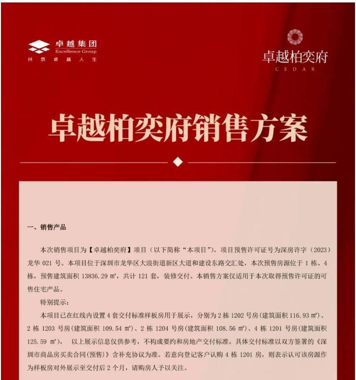 121套住宅,龙华卓越柏奕府销售方案公示,均价约7.48万元/㎡