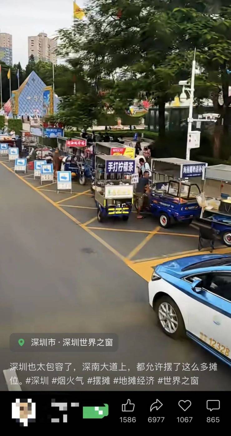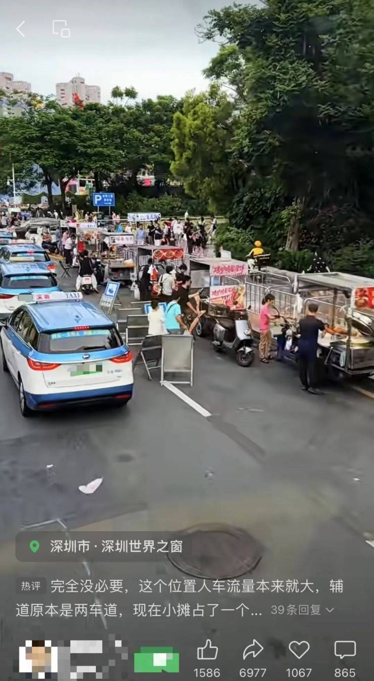 9月6日,奥一新闻注意到有网友发布视频反映,在深南大道世界之窗段出现大量流动摊贩沿街聚集的情况。