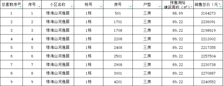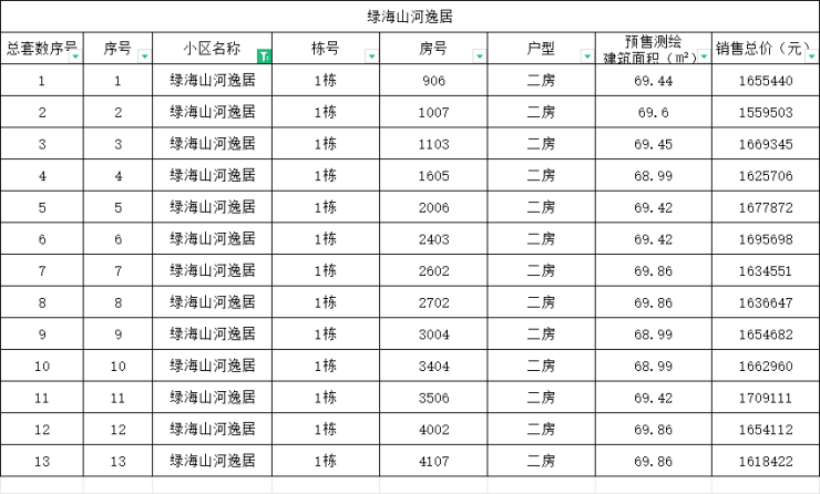 龙岗6个项目共有31套房源,除了绿海名居山河里有22套房源、盛境御府5套房源外,其余4个项目均只有1套房源配售;
