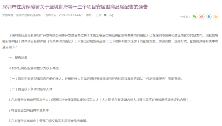 深圳13个安居房集中配售!有盘首批去化仅6%