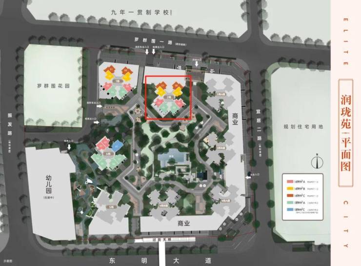 润珑苑共规划8栋住宅楼及1栋12班幼儿园,主推户型为建面约65-90㎡的2-3房,建面约65-70㎡共1906户、85-90㎡共799套。